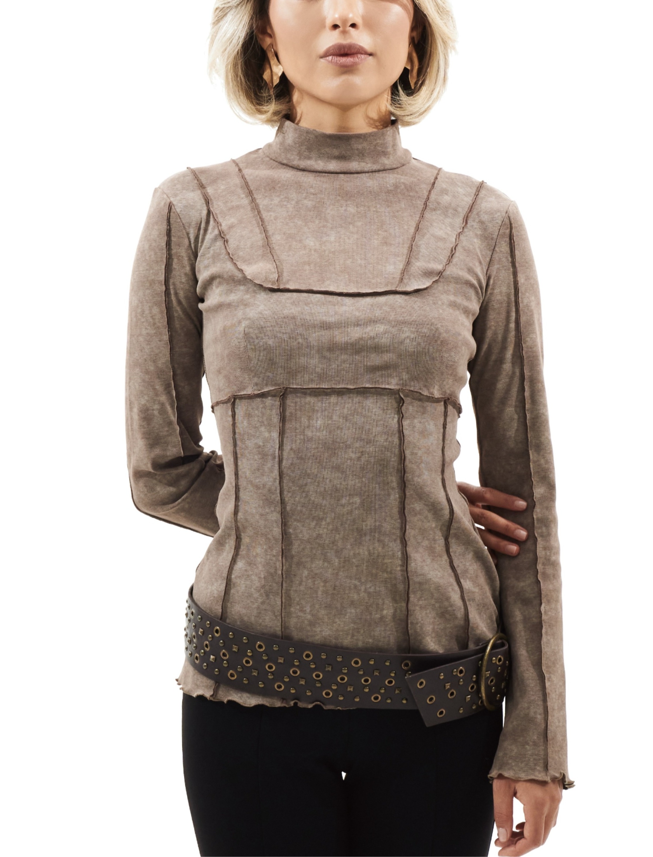 - Натуральная хлопковая рибана в гармоничном оттенке сухого мускатного ореха с эффектом старения плотностью 230гр — дышащая в тепле и уютная в холод ткань, беспрекословно комфортная в ношении